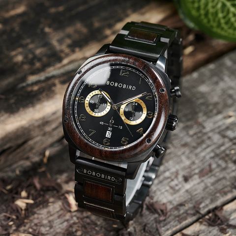 BOBO BIRD Oem Novo Design Cronógrafo Automático Relógio De Luxo Logotipo Personalizado Assista Atacado Relógio De Madeira Reciclada